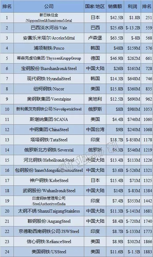 2016ÄêÈ«Çò¸ÖÌúÆóÒµÅÅÐаñ