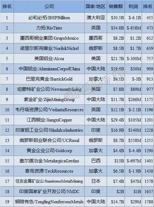 2016ÄêÈ«Çò½ðÊô¿óÒµ¹«Ë¾ÅÅÐаñ