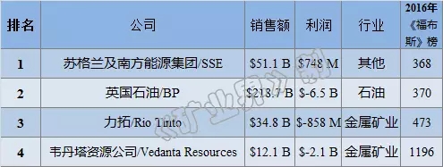 2016ÄêÓ¢¹ú¿óÒµ¹«Ë¾ÅÅÐаñ