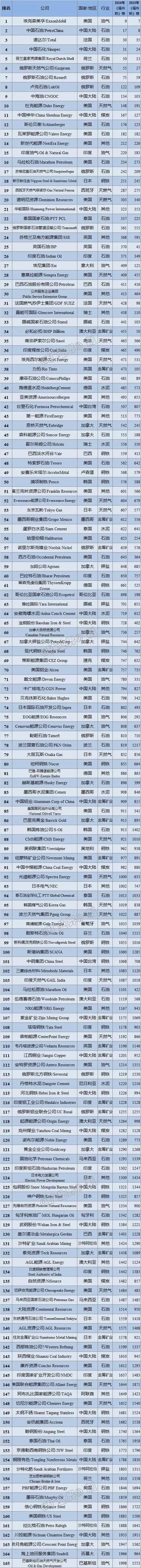 2016ÄêÈ«ÇòÓÍÆø¹«Ë¾ÅÅÐаñ