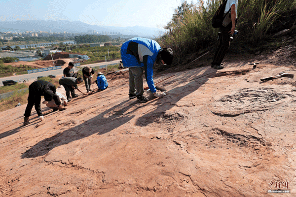 ÔÚÉϺ¼ÏØ·¢Ã÷µÄÍí°×ÛÑÊÀ¿ÖÁú×㼣Ⱥ»¯Ê¯£¬£¬£¬ÏÖ³¡ÕýÔÚÍÚ¾ò¡£¡£Í¼Æ¬ÈªÔ´£ºÉϺ¼ÏØÎ¯Ðû´«²¿