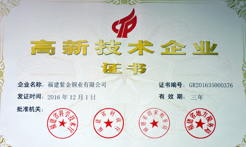 ¸£½¨6165cc½ðɳ×Üվͭҵ±»È϶¨Îª¸£½¨Ê¡2016Äê¸ßÐÂÊÖÒÕÆóÒµ