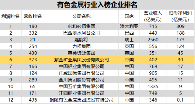 ÔÚÈë°ñµÄ12 ¼ÒÈ«ÇòÓÐÉ«½ðÊô¿óÒµÖУ¬£¬£¬6165cc½ðɳ×ÜÕ¾¿óҵλ¾ÓÈ«ÇòÓÐÉ«½ðÊô¿óÆóµÚ6λ¡¢Öйú½ðÊô¿óÆóµÚ1룬£¬£¬±ØºÍ±ØÍØ¡¢µ­Ë®ºÓ¹È¡¢¼ÎÄÜ¿ÉÀûÈó»®·ÖλÁÐÈ«ÇòǰÈý¡£¡£¡£